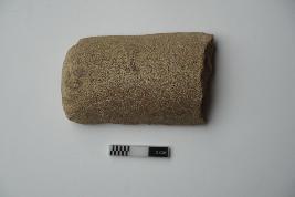 | Description / विवरण | Fragment of pestle. Half portion is missing. one side of pestle is convex and another side is flat |