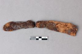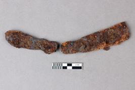 | Description / विवरण | Broad, flat, curved piece of iron. Blade-like implement. Broken into two pieces. |