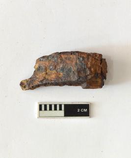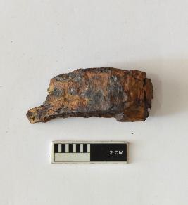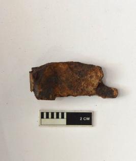 | Description / विवरण | A specimen of a clamp with a slight curved shape which is highly corroded. |