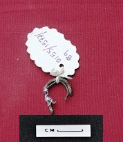 An unbarbed fish-hook with slightly sent head might hav been mecunt for threading during fishing.Hand modelled.