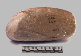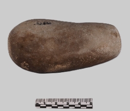 | Description / विवरण | A sandstone muller, roughly cylindrical in shape. It is smoothened and rounded at both the ends. The surface is extremely smooth and have a natural brown tone usual of sandstone. It is worn out at one end. |