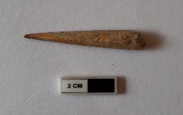 | Description / विवरण | Bone point, half portion is missing. It is white in color |