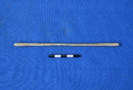 | Description / विवरण | An intact antimony rod of copper with a partly corroded surface and it is narrow in the middle, bud-like ends. |