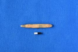 | Description / विवरण | A rod like point or needle of bone with a smooth surface and pointed end on one side and broken from the other. |