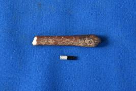 | Description / विवरण | A fragmentary antimony rod of ivory with a reddish coloured smooth surface and a broad round cross section. |