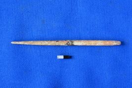 | Description / विवरण | A knitting needle of ivory with either ends tapering and a smooth finish on the surface. |