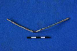 | Description / विवरण | An antimony rod of copper with a bent in the middle and blue paint on the surface of the rod. |