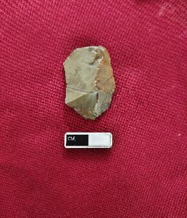 | Description / विवरण | A small side scrapper, actually from a fluted core the flakes taken by a stone hammer, then the positive bulb of percussion also removed by a single pressure flaking and both of the sharp edges are retouched to mark the edge durable and used as side scrapper. |