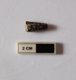 | Description / विवरण | The bone point, a half portion is missing. It is black in color |