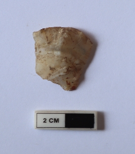 | Description / विवरण | Used flake tool. It is made on chalcedony material |