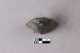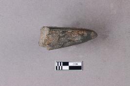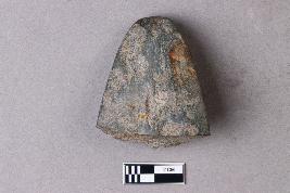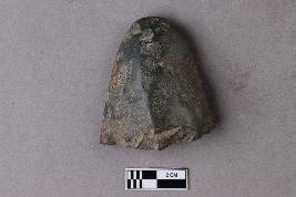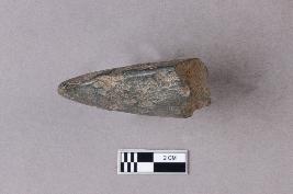 | Description / विवरण | The tapering butt-end on a stone celt with a somewhat rounded triangular cross-section. It is part of a ground polished stone tool. |