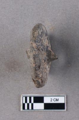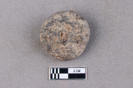 | Description / विवरण | An uneven wheel-like object of terracotta with protrusions on both sides with one protrusion longer than the other. it is grey in colour and appears to be handmade. |