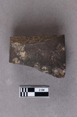 | Description / विवरण | A broken, smooth, ground-polished middle part of a trapezoidal celt. The butt end as well as the working end are both broken and missing. |
