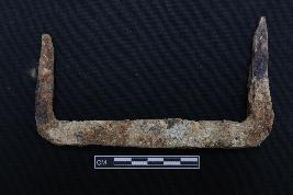 | Description / विवरण | It is an iron clamp. The ends are slightly damaged. The thickness is uneven and the surface is rough. It is fully rusted and fragile. |