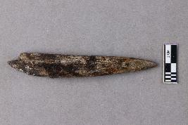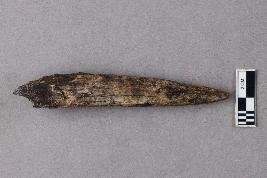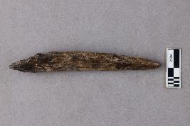 | Description / विवरण | A broken tip of a bone point which is slightly damaged and has a polished surface. |