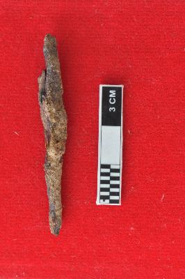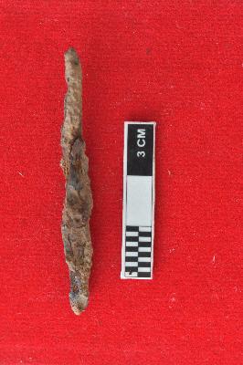 | Description / विवरण | Highly rusted iron nail, it is frazile in nature. The nail is giving an essence of a small arrow head. |