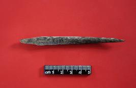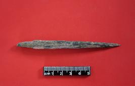 | Description / विवरण | A bone arrowhead, it has intact sharpened end and slightly broken tang. The surface of the object is smooth. |