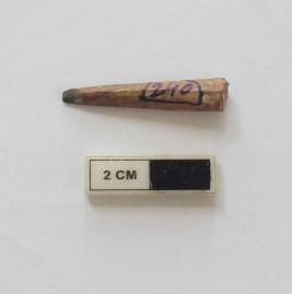 | Description / विवरण | A bone point. A tip is broken and it is brown in color |