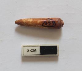 | Description / विवरण | A bone point. Half portion is missing and it is gray in color |