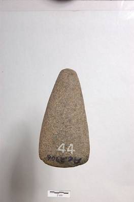 | Description / विवरण | Pear shape object. Cutting edge in convex with slight upraised portion in just above the working edge. Butt end is round shape. Surface is relatively coarse. |