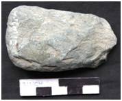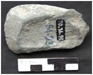 A small axe made by flaking with patches of cortex on both the faces. One margin is thick and convex with marks of flaking. The other margin is moderately thin. Butt is made thin with an arched poll which is partly broken. Patches of cortex are present on both the faces marking a slope to form the cutting edge. Concavo-convex in median and longitudinal cross section. The tool retains used marks in the form of notches.