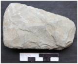 Made by flaking with straight and worked butt. Nearly straight margin shows marks of alternate chipping. Both the faces gradually slope towards the cutting edge. Edge is median and unifacially ground with symmetrically convex edge line showing marks of utilization. Elliptical in median and bi-convex in longitudinal cross section. The ventral is slightly concave and the dorsal remains relatively flat.