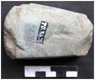 Flaked all over with straight margins. The platform is flat. The working edge is broken. The ventral is slightly concave. The dorsal is flat. Cortex is present all over. Thin and marginal flakes removed from the ventral as also the left margins. Butt is plain and flat. Working edge retains a few flake scars relatively deep in shape.