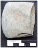 Made by flaking with a patch of cortex on the dorsal face. Edge is moderately thick. Bifacially ground and convex retaining marks of use. Marginal flake scars have been removed from the ventral along the sides. The platform is elongated and uneven. The sides are trimmed and notched to facilitate hafting. The sides are pointed.