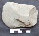 The butt is thick made by alternate flaking with relatively large flake scars. Both the faces retain vertical and oblong cut mark due to flaking. The sides are trimmed by removing small flake scars. Both the faces retain cortex. It is slightly concave on the ventral and the dorsal remains flat near the working edge. The tool retains used marks.