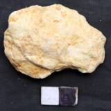 Made on a flake. It is trimmed from all over to get sharp cutting edges. The margins are uneven. Marks of margins are uneven. Marks of secondary flaking is present on both the faces of the tool. It has one big notch which retains a few used marks. The left margin is slanting from both the sides and the right is roughly oval in shape which retains used marks in the form of small notches.