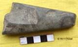 Nicely flaked all over with straight sides. It is little concave on the upper and flat on the inner. It is slightly concave and slopes towards the working edge. Battering marks are noticed on the working edge showing the use of the tool. It slightly tappers towards the working end. A patch of cortex noticed on the ventral.