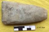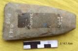 Ground well on both the faces. A few tiny steps are marked along the lateral margins. Both the surfaces are slightly convex. The ground edge is sharp and concave retaining marks of use. Butt is thin with a rectangular poll. Margins are somewhat divergent and little rounded. Elliptical in median cross-section. The tool retains cortex on the ventral.
