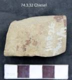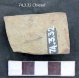 Flaked on the ventral. Dorsal surface is partly ground. The lateral margins are thick and flaked. Working edge is bifacially ground and beveled. It is slightly concave in the dorsal and flat on the ventral. The tool has a prominent working edge.