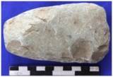 Made by flaking all over with an arch like butt which is concave in shape. The edge is bifacially grounded. The lateral margins are blunt. One margin is straight. Other is convex. The edge line is asymmetrically convex. Biconvex in median and longitudinal section. Both sides of the tool tapers towards the working edge. The platform is thick and flat. The sides of the tool retain marginal flaking all over. The tool retains used marks.