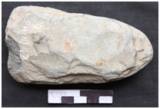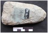 Both the faces are flaked with a patch of cortex in the ventral. Lateral margins are thick and worked. Right margin shows alternate flaking. Butt is roughly pointed. Working end shows a fracture obliquely towards the edge. The edge is irregular and slightly broken. Sub-triangular in median cross section. The butt is slightly roundish and extends towards the body of the tool. The tool is used.
