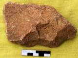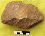 Unifacially worked all over. Flakes are small and bold. A big and primary flake scar obliquely intersects the flat ventral to form the working edge, ventral is trimmed along the left margin. A patch of cortex at the left butt. Narrow butt. Diamond like median section. Triangular in longitudinal sections. The tool is not rolled but patinated heavily.