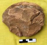 Worked on both the faces. Dorsal extensively modified by bi-directional flaking. The scars are bold and deep. Butt is unworked which is opposite to the edge. Edge is convex. Ventral has trimming along the edge with cortex all over the body. Edge is irregular. The tool is rolled and patinated. The tool retains a few marks of secondary flaking.