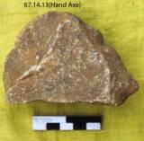 Worked on both the faces. Dorsal has flaking along right side. Left is very steep showing a big step. A big patch of cortex on the posterior. Ventral shows steep working along the left margin. Two big and medium scars on the dorsal. Nearly pointed tip, one is irregular and the other is straight. Triangular in cross-section. A patch of cortex is noticed on the ventral. The tool retains use marks.