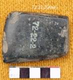 The tool is complete and highly polished. It is concave in both the surfaces and tappers little towards the right margin. it has an oblong platform and hammered from both the sides. The tool retains heavy cortex all over. The tool is prepared from a river rolled pebble. The cortex portions retain chipped marks due to slow hammering with small anvils whose marks are present on the surface of the tool.