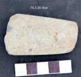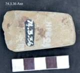 Roughly ground all over. The faces are flat. The edge is partly broken due to use. It is beveled from the dorsal surface. The lateral margin are smooth and flat. Butt is moderately thick with rectangular poll. Rectangular in median section. Triangular in longitudinal section.