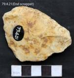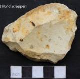 Secondarily flaked to obtain cutting edge on two sides. A large flake has been removed from the dorsal to obtain a sharp cutting edge. A secondary flake has been removed from the dorsal which runs towards the cutting edge. The tool is slightly concave on the ventral and relatively flat on the dorsal surface used marks over present all over in the form of small notches.