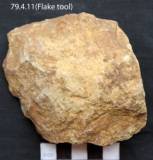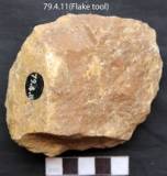 It is made up of a large flake with sides trimmed. Marks of secondary flaking are present on the both the faces. The ventral is conical. The dorsal is relatively flat. A patch of cortex near the section which is slanting to the dorsal. Bold cut marks and notches are present all over. The tool retains use marks on both the sides and on the edge portion.