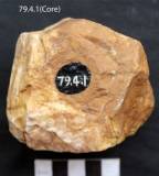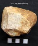 Tools have been removed from all the sides by hammering technique. Relatively large flake scar are present on the surface and on the sides. A few bold cut marks are present on the dorsal. The dorsal is slightly conical in shape. Both the face are flat as a result of removal of flakes. It is roughly and crudely flaked. The flakes have been removed from both the directions.