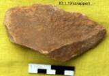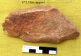 Made on a lateral flake. The dorsal has primary flaking and is trimmed along the right side to form a convex working edge. Left margin is thick and plan. The tool is suitable to hold. Edge shows marks of utilization. Ventral surface has a primary flaked surface. The tool is patinated and is not rolled. The right margin of the tool is little flat and thick which slopes towards the cutting end. It retains used marks.