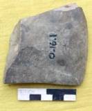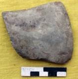 Ground all over, retaining solitary scars on the upper surface and at the margins which are little concave. The ventral is flat and convex. Dorsal is flat with beveling at the edge. The edge line is convex showing marks of use.