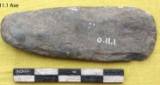 Both the faces are flaked. Butt shows tiny steps on the ventral. A longitudinal scar spreads on the other side. The lateral margin is slightly convex. Butt is rounded and the edge is convex showing marks of battering probably due to use. The sections are elliptical.