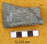 The tool is slightly convex with an uneven platform. Both the sides are concave and retain marks of chipping. Both the faces are chipped and retain flake scars. It has a tapering working edge. Section is uneven and is notched. The tool retains use marks.