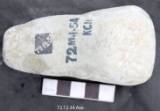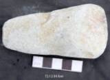 Made on a pebble, retaining cortex on the body. Both the faces one ground at the working end to intersect into a median and convex edge. Lateral margins are thick and roundish. Butt is ground to a straight poll. Nearly ovoid in median section. Longitudinal sections is lenticular. The tool has a tapering end which is parallel from both the sides. A few small flake scars have been removed from both the sides towards the working edge.