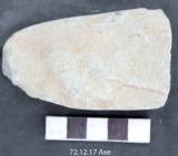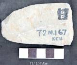 Made on a flaked. Ventral shows a thick triangular platform. It is flat on dorsal and is concave in one side. The margins are flat and shallow in profile. The tool retains use mark. The section is slightly tappers. The tool is used on one edge line which is marked by presence of chipped marks along the working edge. The working edge is tapering from both the sides in a parallel fashion.