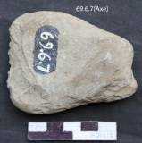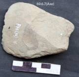 The axe is extensively used for cutting. One side of the tool retains a plain surface and the other is worked out creating deep flake scar. The platform is uneven and retains some used marks. The sides of the tool are flat and slants towards the working end. The tip of the tool is again sharpened by removing small chips from both the directions and from both the margins.